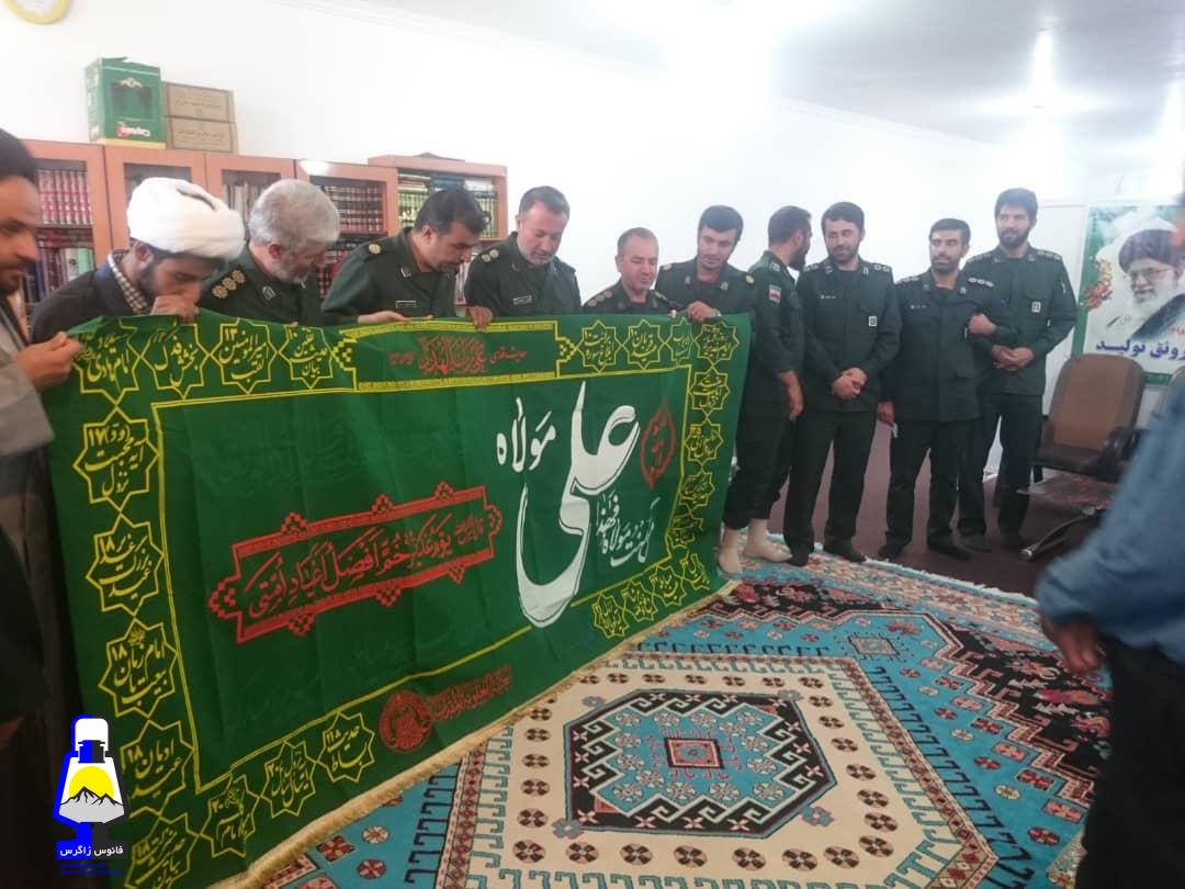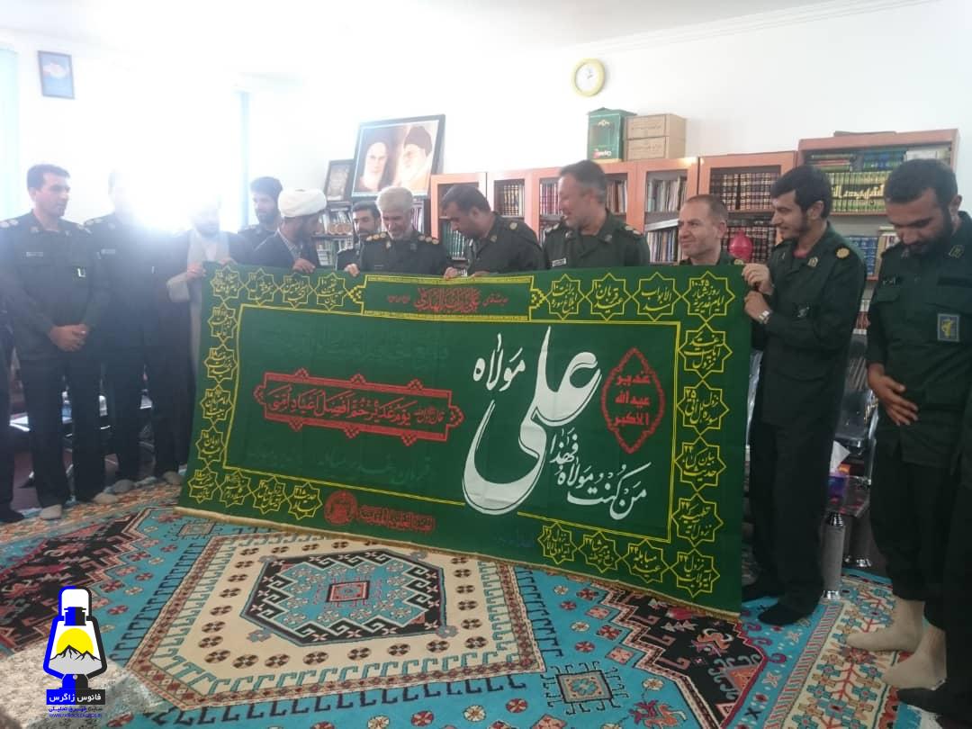 به مناسبت عید غدیر خم بزرگ ترین عید شیعیان جهان پرچم نورانی بارگاه نجف اشرف که با نام مولی الموحدین علی ابن ابی طالب منقش شده است برای زیارت مردم متدین چرام به دفتر امام جمعه محترم آورده تا در روز غدیر برای تبرک در جایگاه برگزاری مراسم افراشته شود و مردم شهید پرور چرام از فیض وجود این پرچم که عطر و بوی بارگاه امام اول شیعیان را دارد بهره مند شوند.
