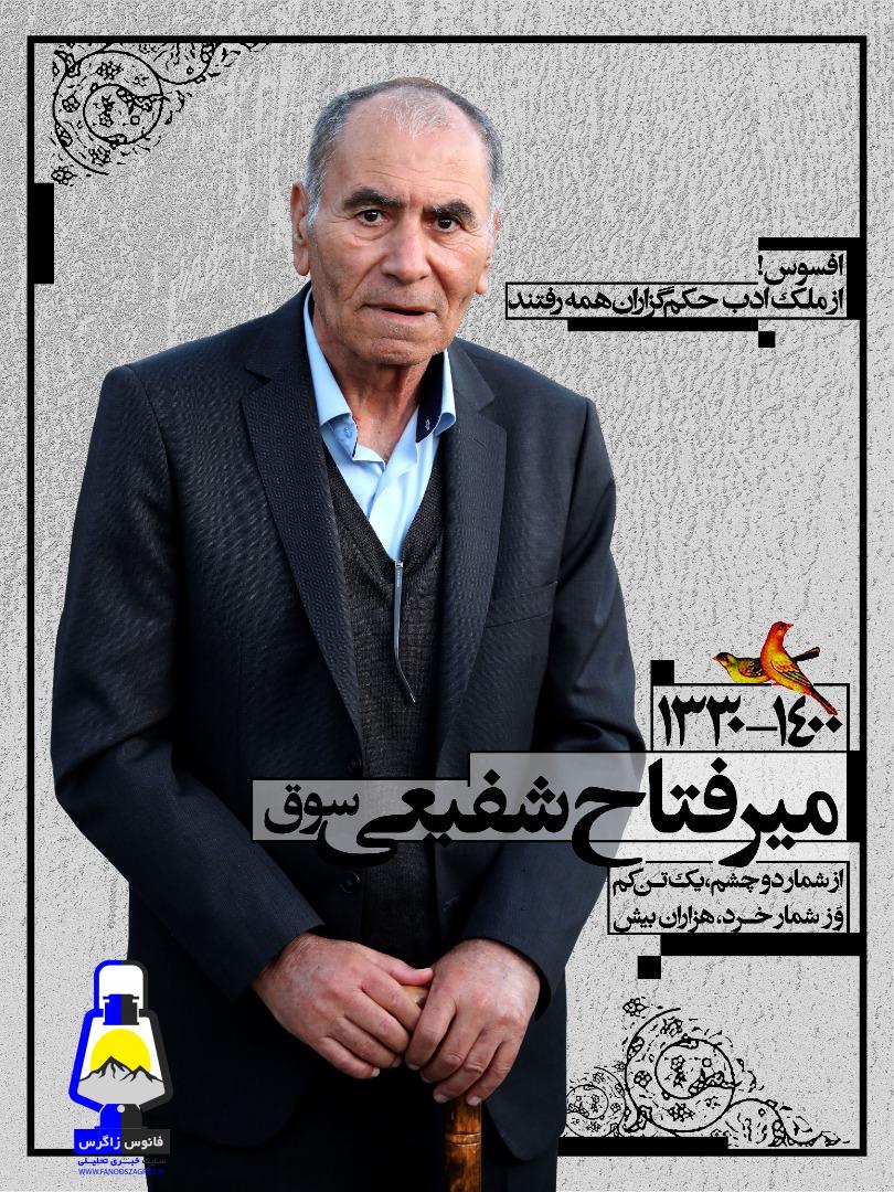 خبر درگذشت فرهنگی فرهیخته استاد ” میر فتاح شفیعی سوق” از پیشکسوتان عرصه تعلیم و تربیت استان کهگیلویه و بویراحمد موجب تاثر و تالم اینجانب گردید.