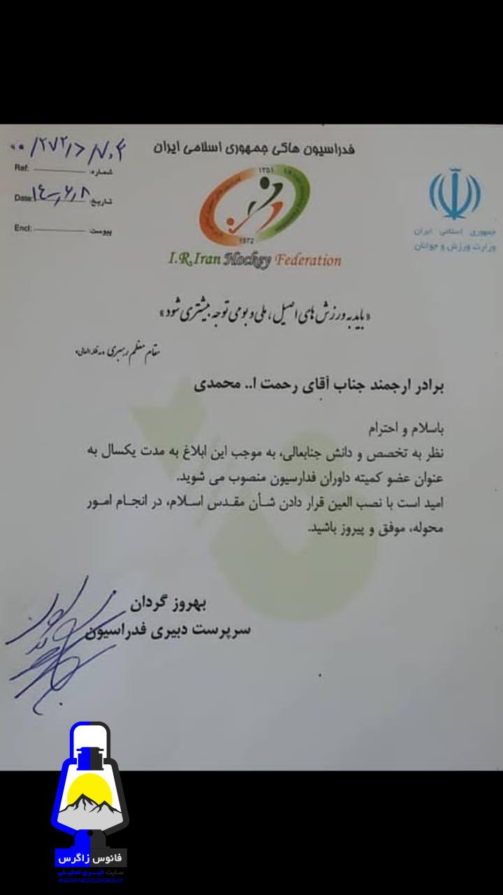 به گزارش فانوس زاگرس ، طی حکمی از سوی بهروز گردان سرپرست دبیری فدراسیون هاکی کشور ، رحمت الله محمدی ، رییس هیات هاکی و داور بین المللی گچسارانی به عضویت کمیته داوران فدراسیون هاکی ایران درآمد.