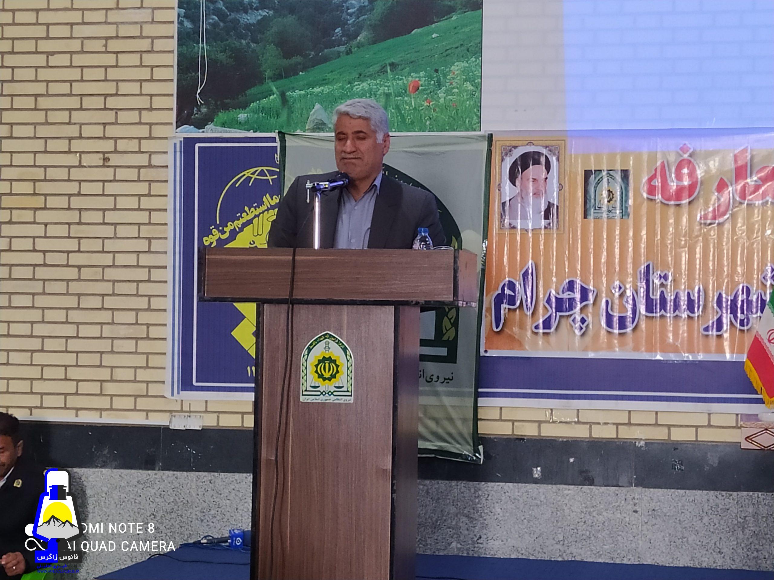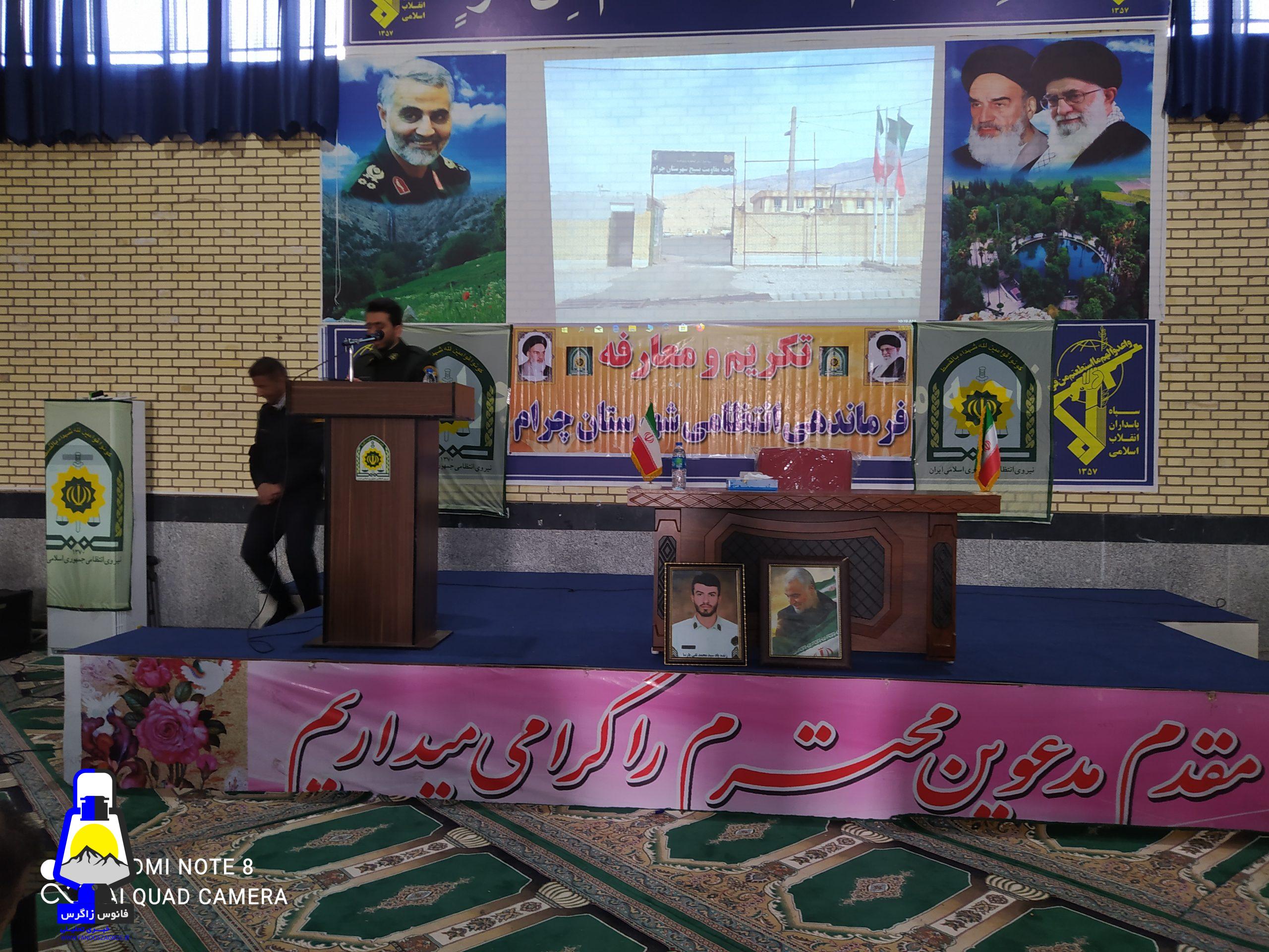 سرهنگ اکبری جانشین فرماندهی نیروی انتظامی استان وسرهنگ حکمتی از بازرسی استان برای اعلام انتصاب فرماندهی جدید و همچنین امام جمعه چرام دکتر افشار و ریاست دادگستری احمدی و دادستان آذریتون و فرماندار دکتر توفیقیان در این جمع باشکوه حضور بهم رسانند .