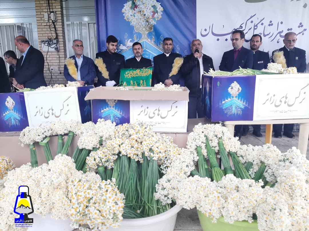 آئین اهدا ی ۸ هزار شاخه گل نرگس به مرقد مقدس امام رضا (ع) در بهبهان برگزار شد.