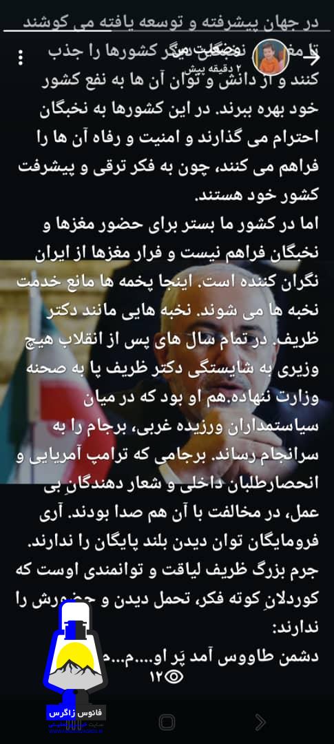 از این روی نخبه هایی مانند دکتر ظریف و…برای خدمت و گره گشایی در کشور خود با موانع روبرو خواهند شد و آماج تهمت ها و مخالفت ها قرار می گیرند.