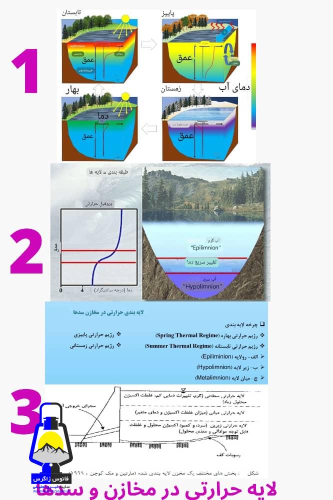 مهم ترین پدیده ای که موجب تغییرات فصلی کیفیت آب مخازن سدها میشود ، لایه بندی حرارتی است وجود لایه بندی حرارتی در مخزن سد عامل و بیانگر تغییرات کیفیت فیزیکی شیمیایی و بیولوژیکی آب در ترازهای مختلف است که در صورت تداوم می تواند منجر به نامناسب شدن شرایط کیفی آب در مخزن گردد. (کرمانی و ناصری ۱۳۸۱)