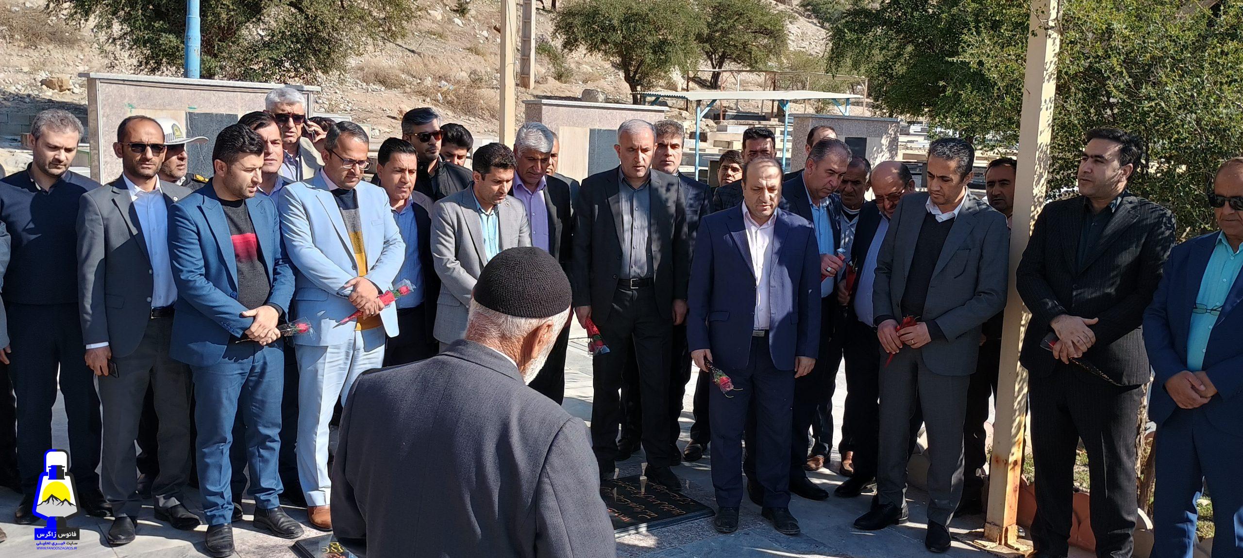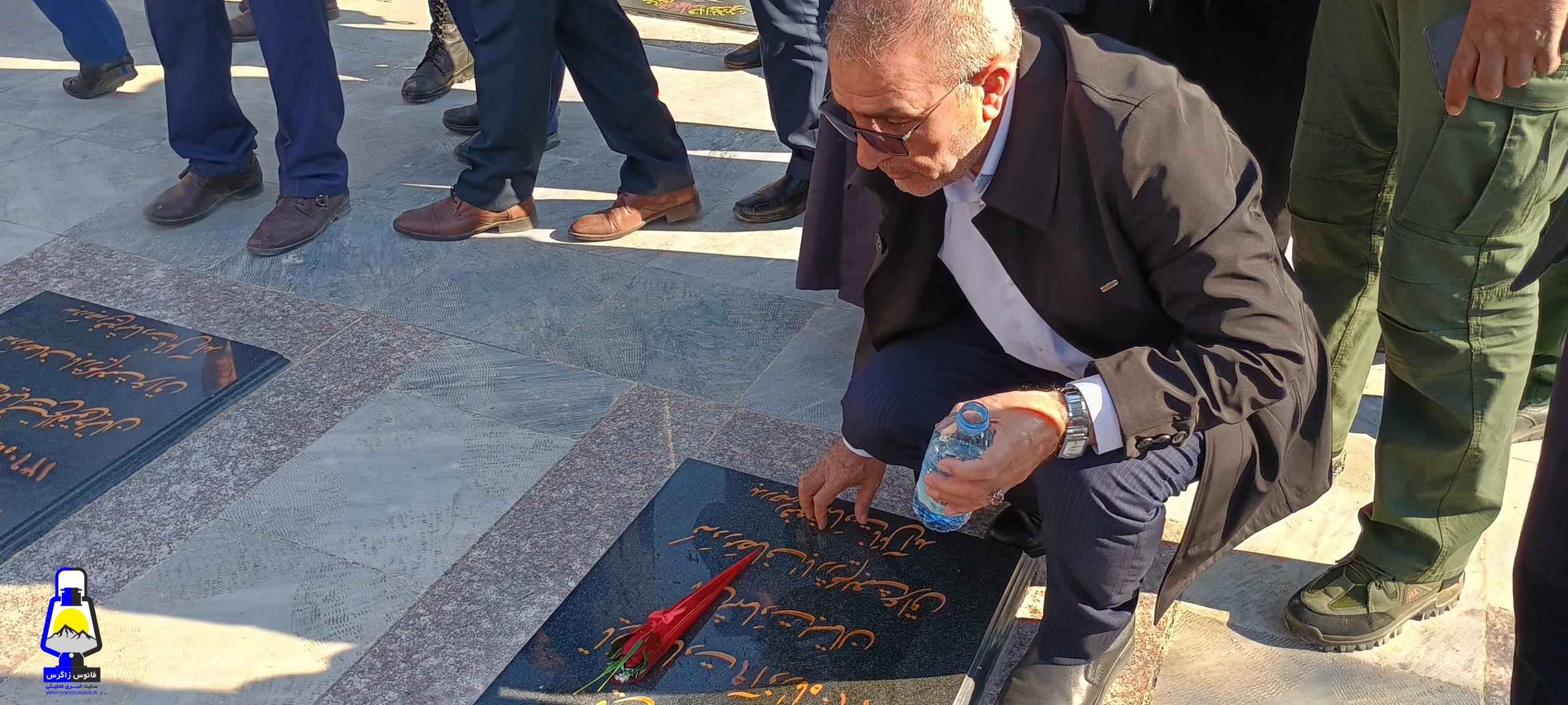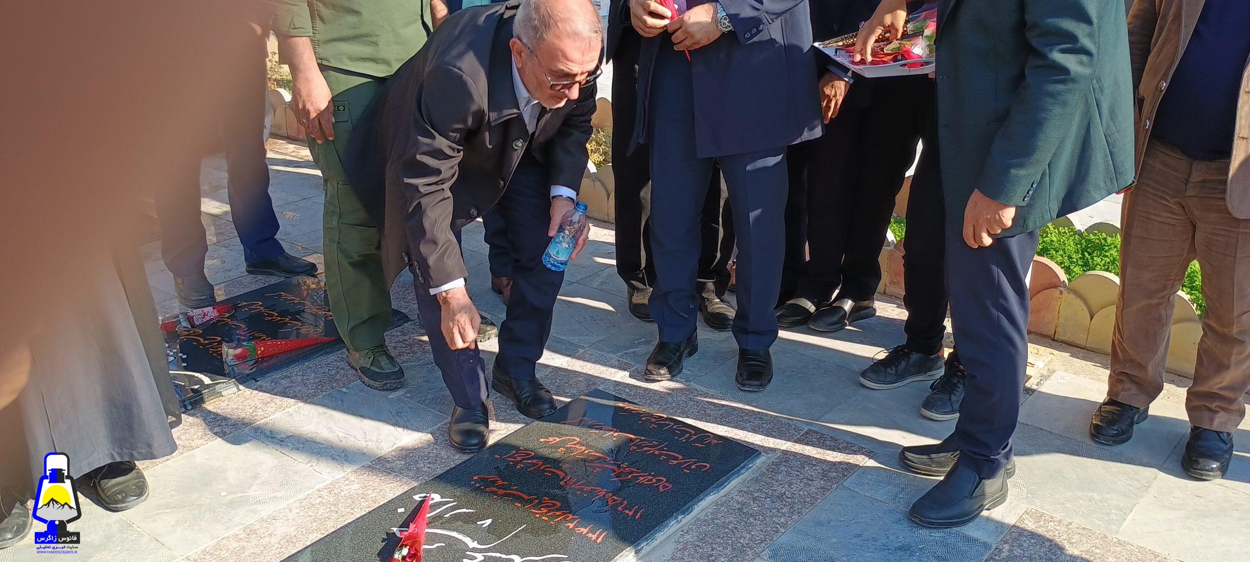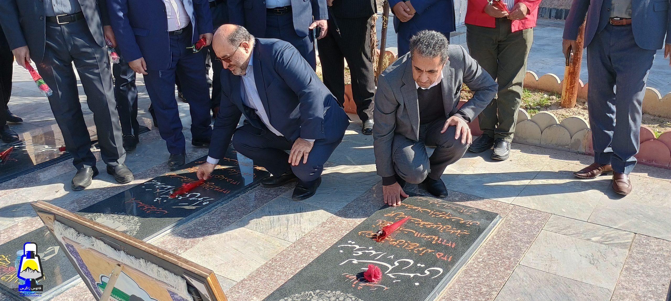 ابتدا به گلزار شهدای شهرک رفته و ضمن بازدید آنرا غبار روبی و با پدر و مادر روحانی شهید حسینی دیدار نمودند.