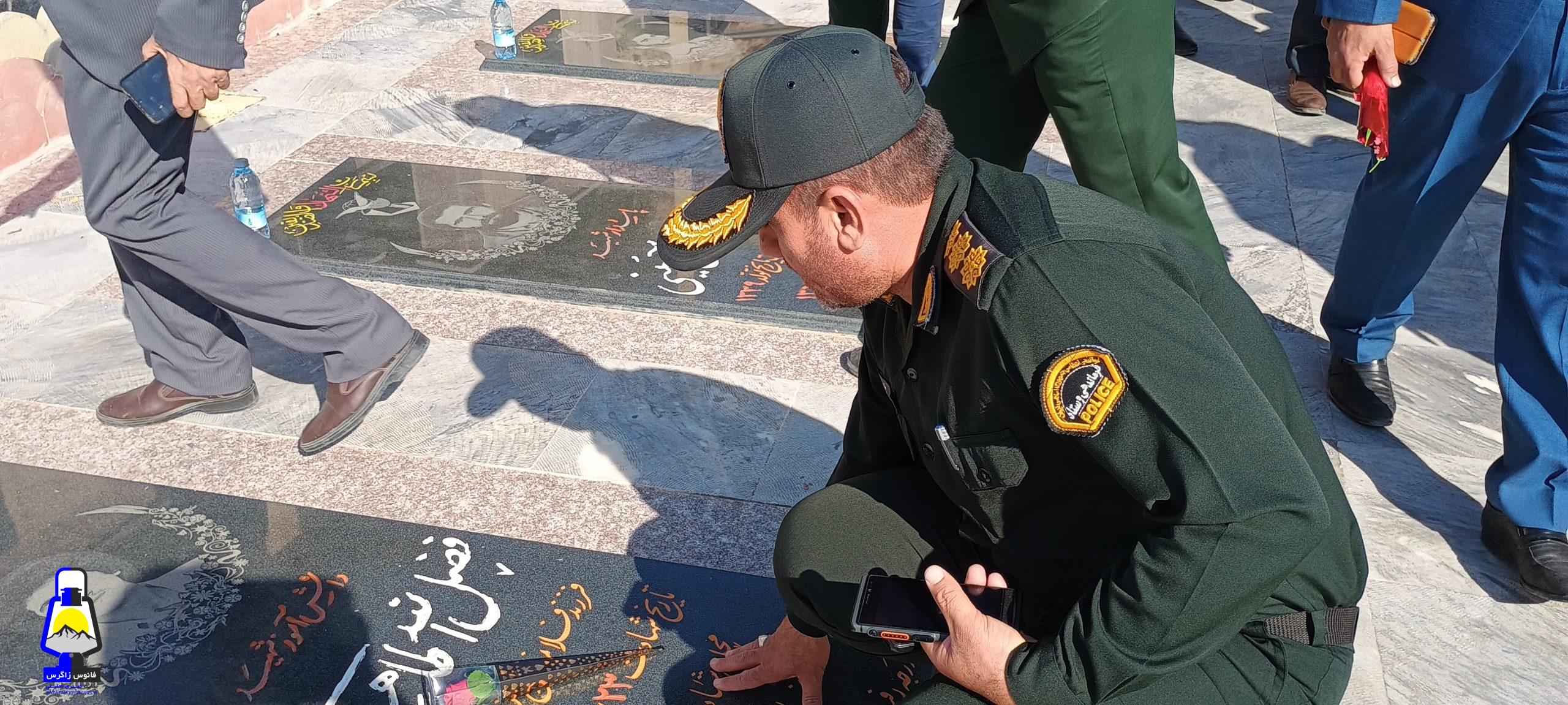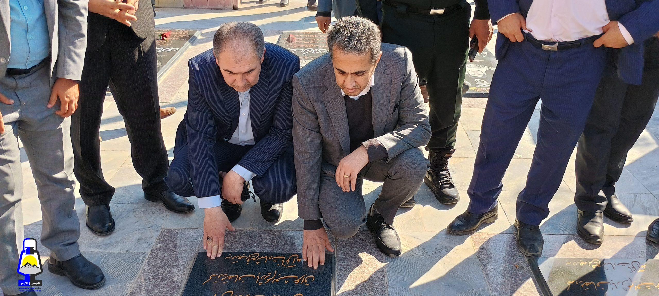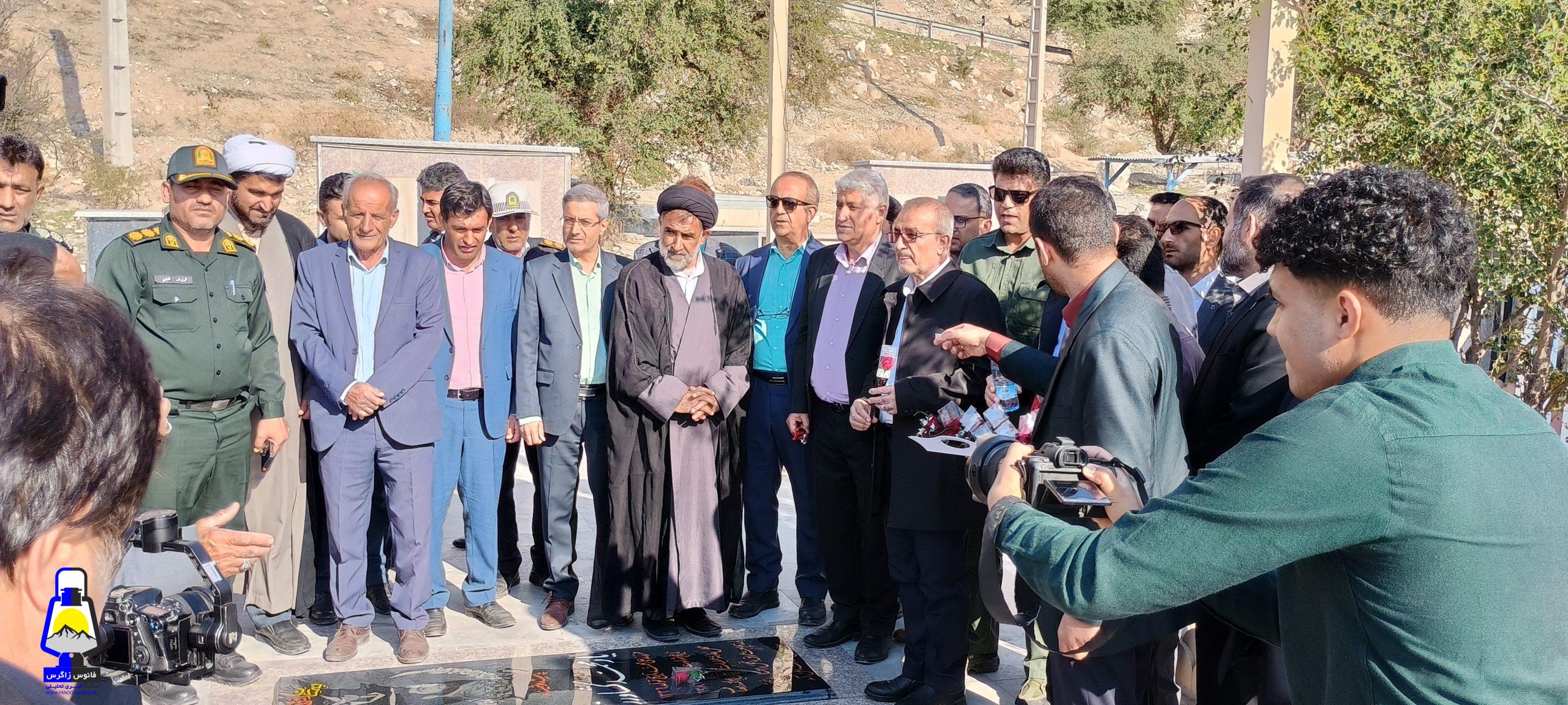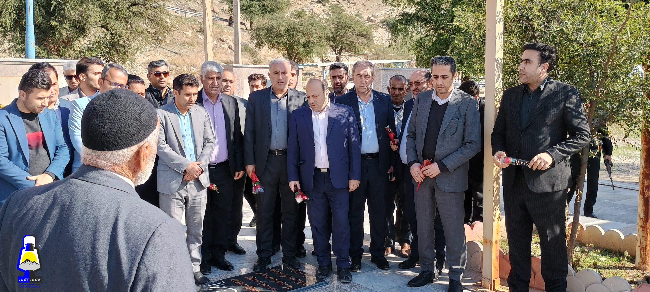 ابتدا به گلزار شهدای شهرک رفته و ضمن بازدید آنرا غبار روبی و با پدر و مادر روحانی شهید حسینی دیدار نمودند.