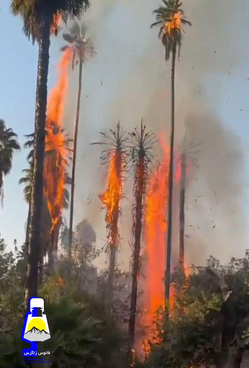 از ساعات عصر امروز فیلمی از شعله کشیدن آتش بر قامت بلند نخل های باغ تاریخی چشمه بلقیس چرام در فضای مجازی استان دست به دست میشود و در حال انتشار است.
