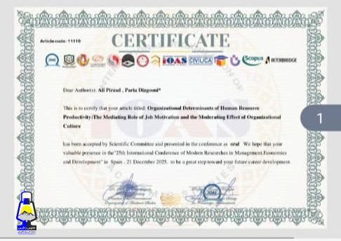 به گزارش فانوس زاگرس ، سرکار خانم دکتر پریا دیزگونی مقاله ای تحت عنوان عوامل سازمانی مؤثر بر بهره وری نیرو ی انسانی، نقش میانجی انگیزش شغلی و نقش تعدیلگر فرهنگ سازمانی به بیست و پنجمین کنفرانس بینالمللی پژوهش در مدیریت، اقتصاد و توسعه در مادرید اسپانیا ارائه دادند که با کسب مجوز و چاپ همراه شد.